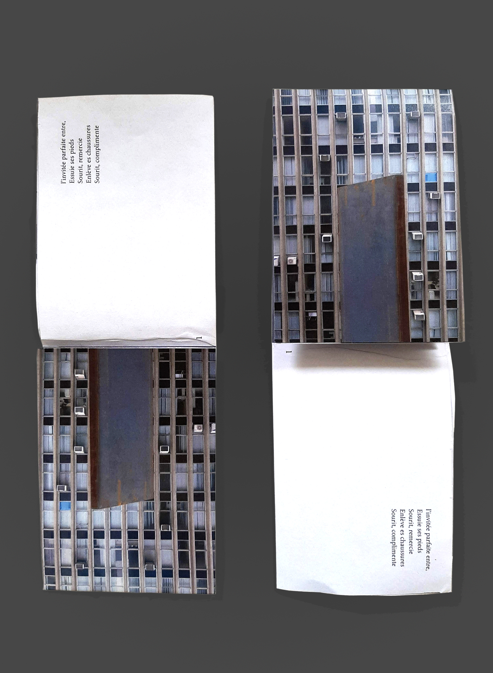 Livro-objeto que acompanhava um ensaio fotográfico montado na galeria da escola, desenvolvido durante o semestre de intercâmbio na École supérieure des beaux-arts de Bordeaux (EBABX).