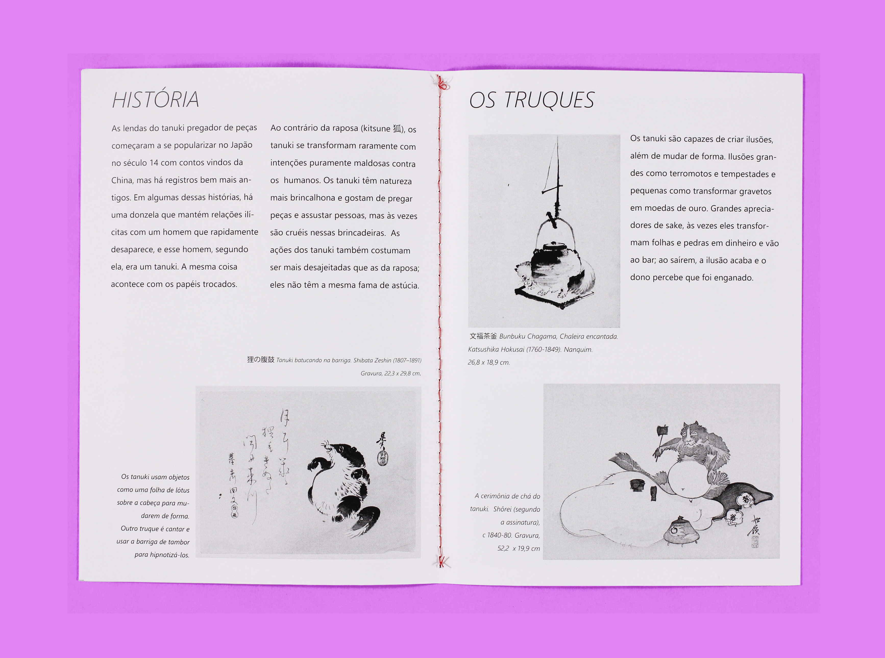 Zine sobre o Tanuki, personagem do folclore japonês. Foi vendido durante a Feira (Sub) de publicações independentes e faz parte do acervo dos organizadores.
