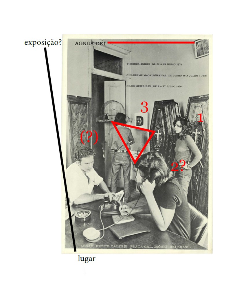 A pesquisa reconstrói o histórico de três eventos que aconteceram na galeria carioca: a mostra sequencial Agnus Dei (1970, Thereza Simões, Guilherme Magalhães Vaz, Cildo Meireles), A Nova Crítica (1970, Frederico Morais) e Isso é que é (1975, Antônio Manuel). Esse trio de acontecimentos recebe uma atenção especial por conta, sobretudo, de A Nova Crítica: uma proposta do crítico Frederico Morais de comentar Agnus Dei não por meio de texto, mas de objetos que usassem os mesmos materiais e compartilhasse o mesmo espaço dos trabalhos comentados, em um gesto de generosidade diante dos artistas. Por meio de uma análise da imagem-convite de Agnus Dei e dos objetos criados por Morais, a pesquisa da artista Cris Ambrosio aponta procedimentos que remetem a A Nova Crítica em trabalhos de Antônio Manuel, e relaciona a próxima relação de diálogo e colaboração entre os vários personagens da cena artística com o contexto de perseguição política da fase mais violenta da ditadura civil-militar.