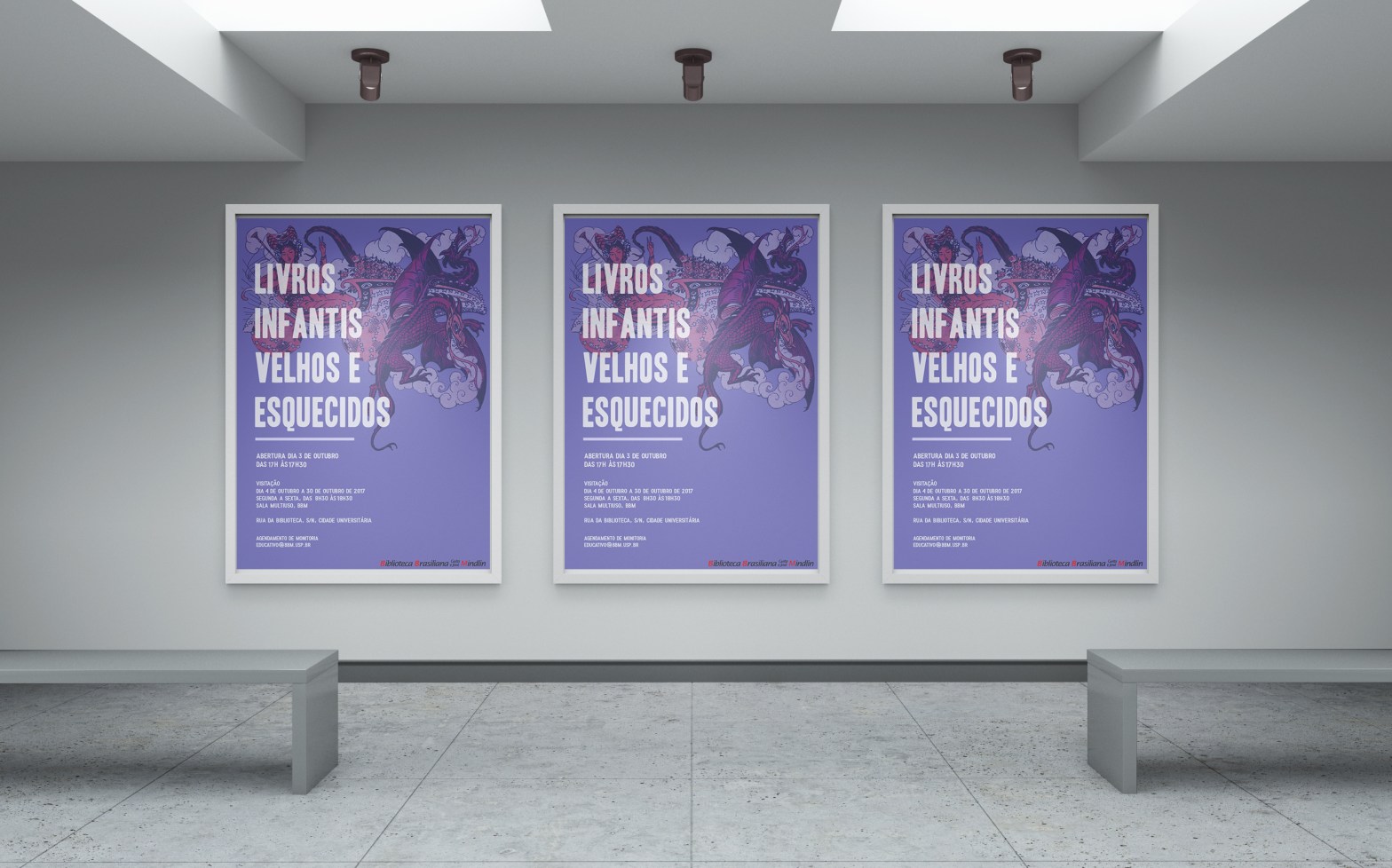 Cartaz desenvolvido para a exposição Livros infantis velhos e esquecidos, na Biblioteca Brasiliana Guita e José Mindlin, 2017. Curadoria de Patrícia Tavares Raffaini e Gabriela Pellegrino Soares.